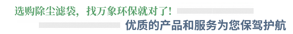 江蘇萬象環保科技有限公司主要從事各種除塵器(收塵器、積塵器),袋式除塵器、氣箱脈沖除塵器、單機除塵器;濾袋(除塵布袋、除塵濾袋、除塵袋、過濾氈、過濾布、收塵袋、積塵袋),高溫濾袋系列如氟美斯針刺氈濾袋、美塔斯針刺氈濾袋、玻纖針刺氈濾袋、玻纖布;中溫系列如PPS針刺氈濾袋、P84針刺氈濾袋、亞克力針刺氈濾袋;常溫系列如滌綸針刺氈濾袋、丙綸針刺氈濾袋、覆膜針刺氈以及涂層、拒水防油、防靜電系列和各種龍骨、電磁脈沖閥、控制儀等生產與加工,是 大型濾料廠家之一,員工余人,企業擁有專業檢測中心,具有完備的專業安裝和售后服務體系。